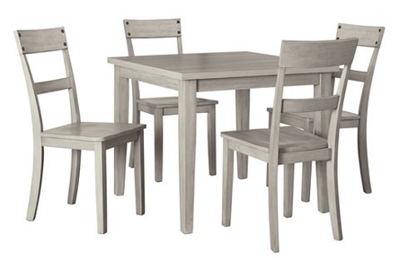 It’s so easy being gray at least this 5-piece dining set makes it seem that way. This transitional counter-height table and barstool ensemble sports a charcoal gray finish with textured gray upholstery for an on-trend and relevant appeal. Plushly upholstered seat cushion in a practical polyfiber makes it a pleasure to linger at the table. Best of all, square table design is ideally suited for small spaces.
